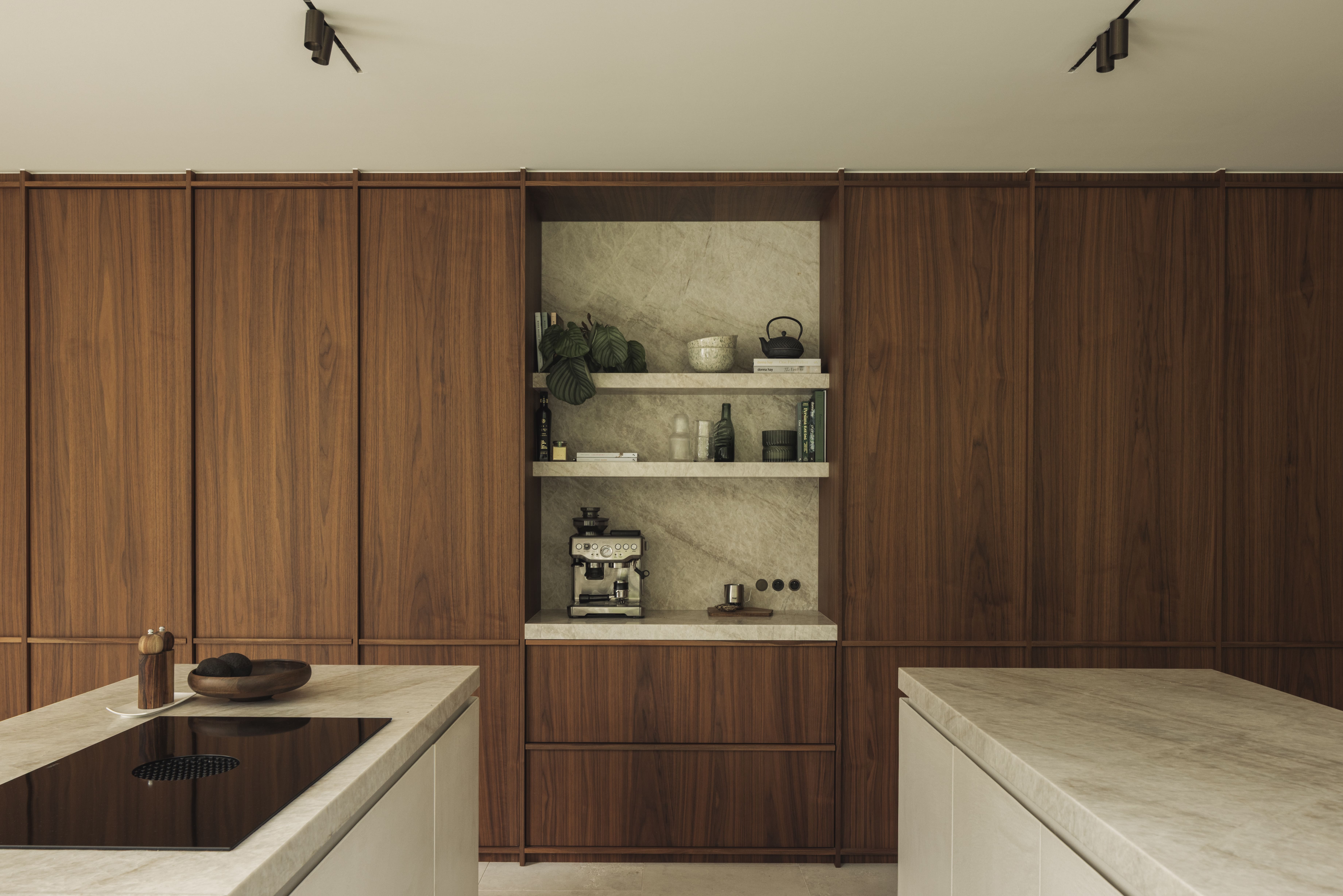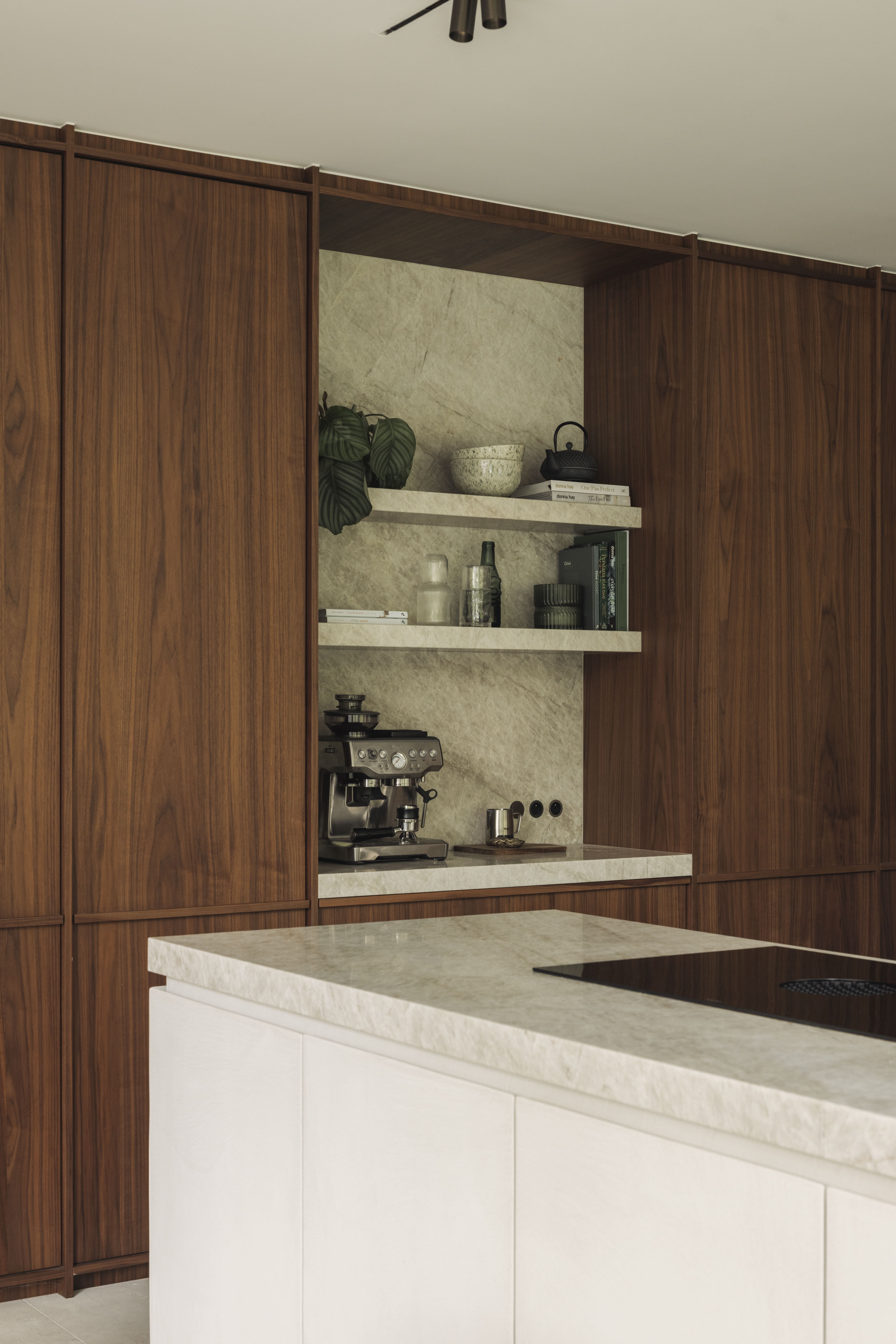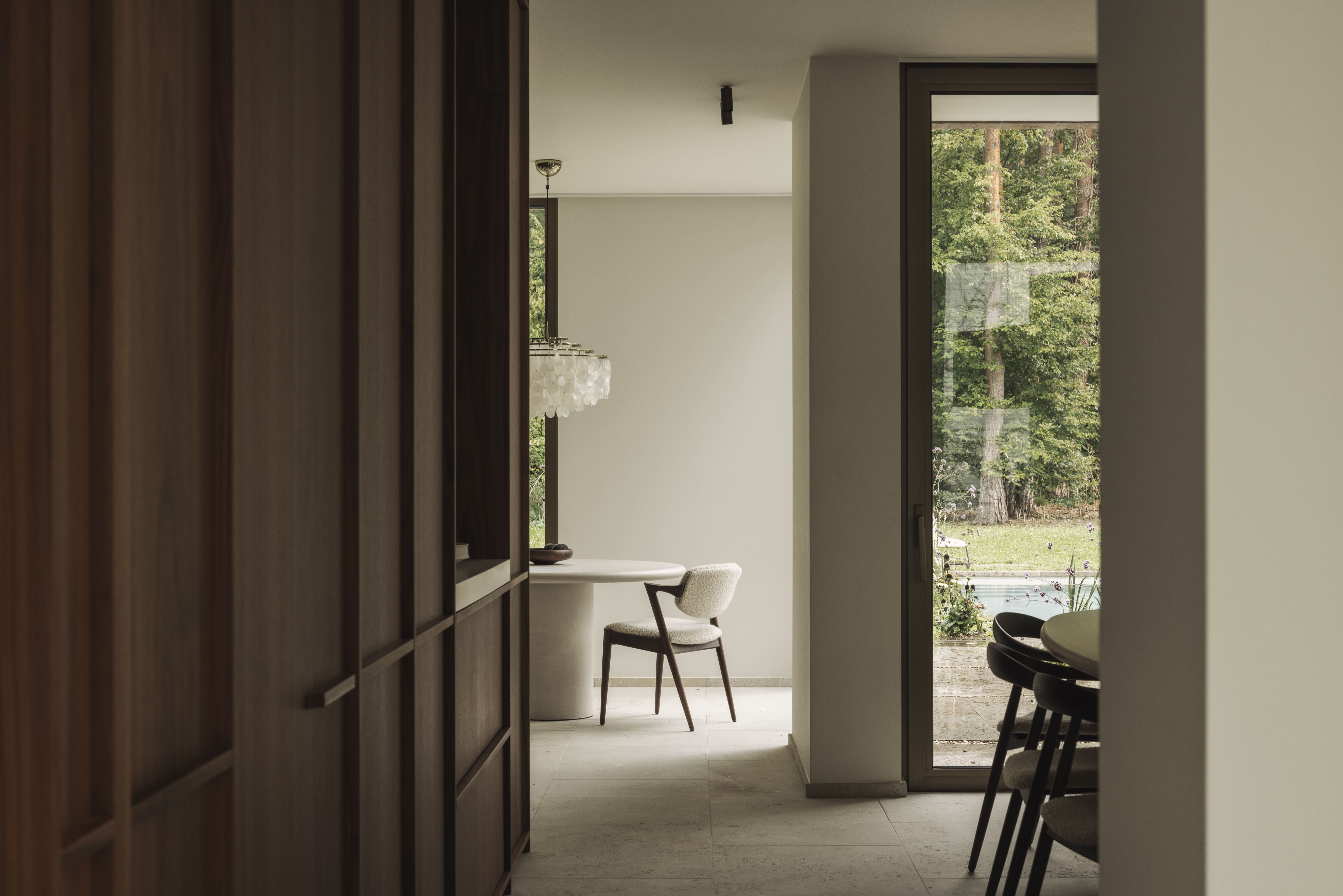 Deze ruime woning plaatst zich in een rustige en groene omgeving. Naar de straat toe vertoont de woning zich eerder gesloten waar deze achteraan dan weer volledig opent naar de tuin. De oriëntatie van de woning werd mee opgenomen in het ontwerp waarbij de woning zich vooral afscheidt van het zuiden en opent naar het oosten en westen. Het materiaalpallet is zacht en rustig met warme materialen.